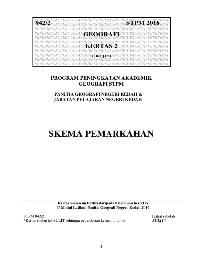 Skema Percubaan Geografi Penggal 2 Stpm 2017 Kedah Pdf