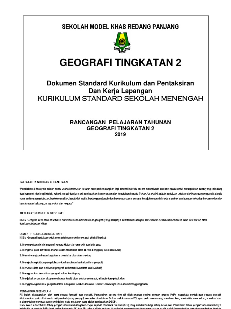 Rpt Geografi Ting 2 2019 Smk Redang Panjang Pdf