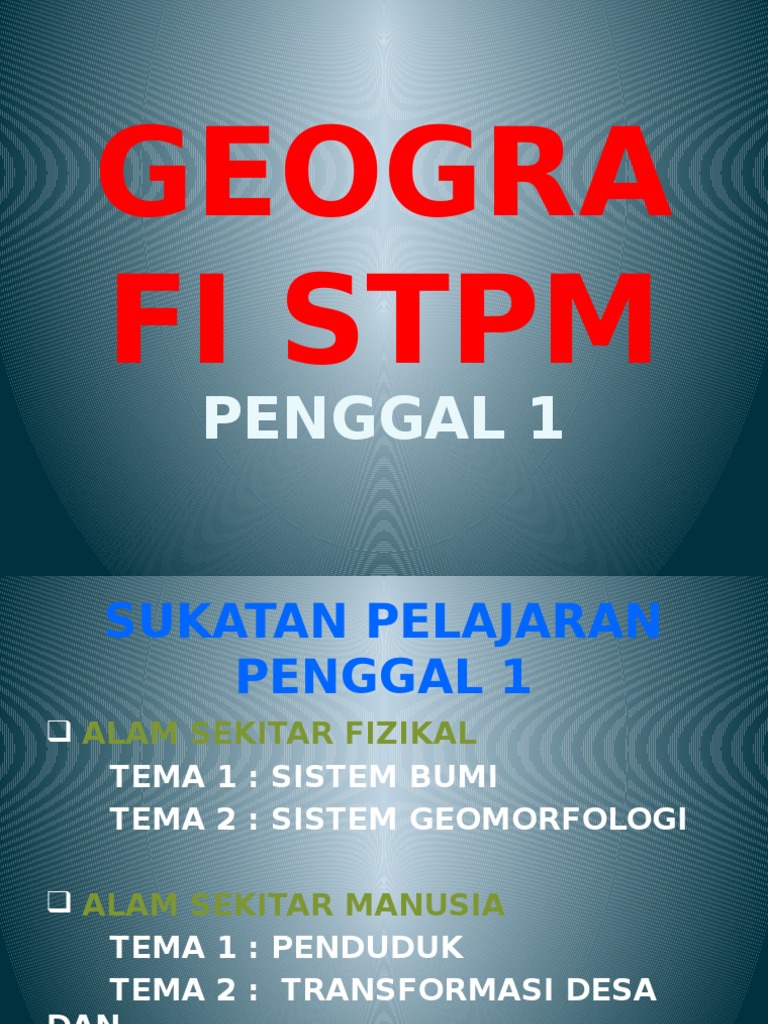 Geografi STPM Penggal 1 Geografi STPM Penggal 1 BAHAGIAN A. Sample nota geografi spm by buku geografi issuu ialah nota geografi spm dari sumber berikut. Ditakrifkan sbg satu set angkubah atau unsur-unsur yg saling bertindak antara satu sama lain mempunyai tenaga dan bahan yg dpt masuk dan keluar dari sistem tersebut.