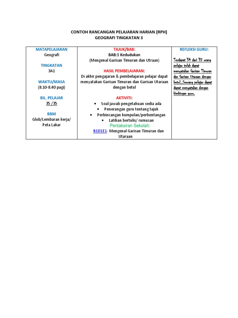 Contoh Rancangan Pelajaran Harian Geografi Tingkatan 3 Pdf